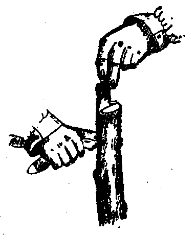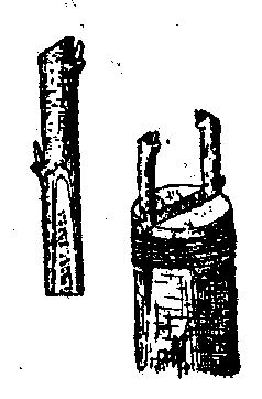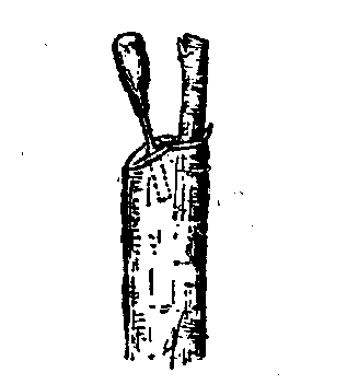 Vous pouvez également, après avoir fendu à la serpette, laisser la lame de cette dernière dans la fente et exercer avec elle la pression nécessaire pour faire entrebâiller les bords, comme le montre la figure 16,