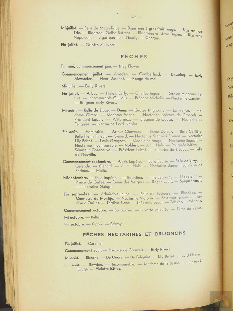 526 FRUITS ADOPTES PAR LE CONGRES - Leur maturité moyenne et relative