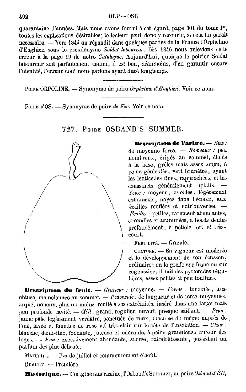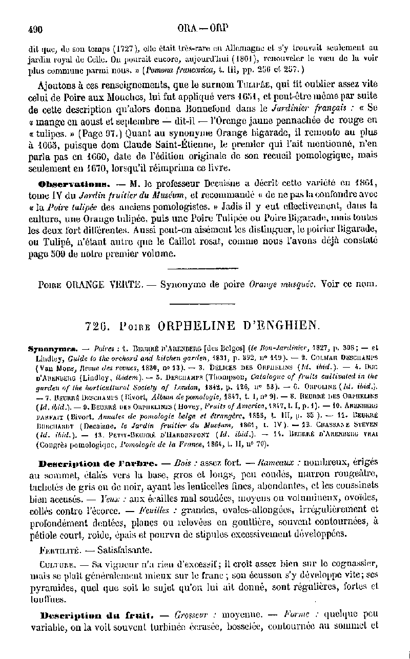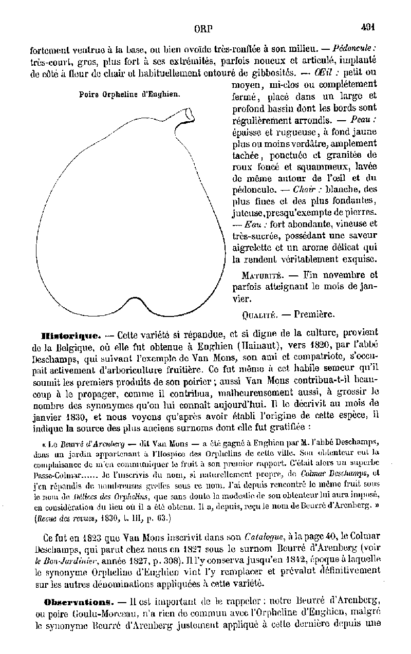 SYN. - Beurré d'Aremberg < 1820 BELGIQUE / BELGIUM Obtenue à ENGHIEN par l'abbé DESCHAMPS dans les jardins de l'Hospice des Orphelins de la ville