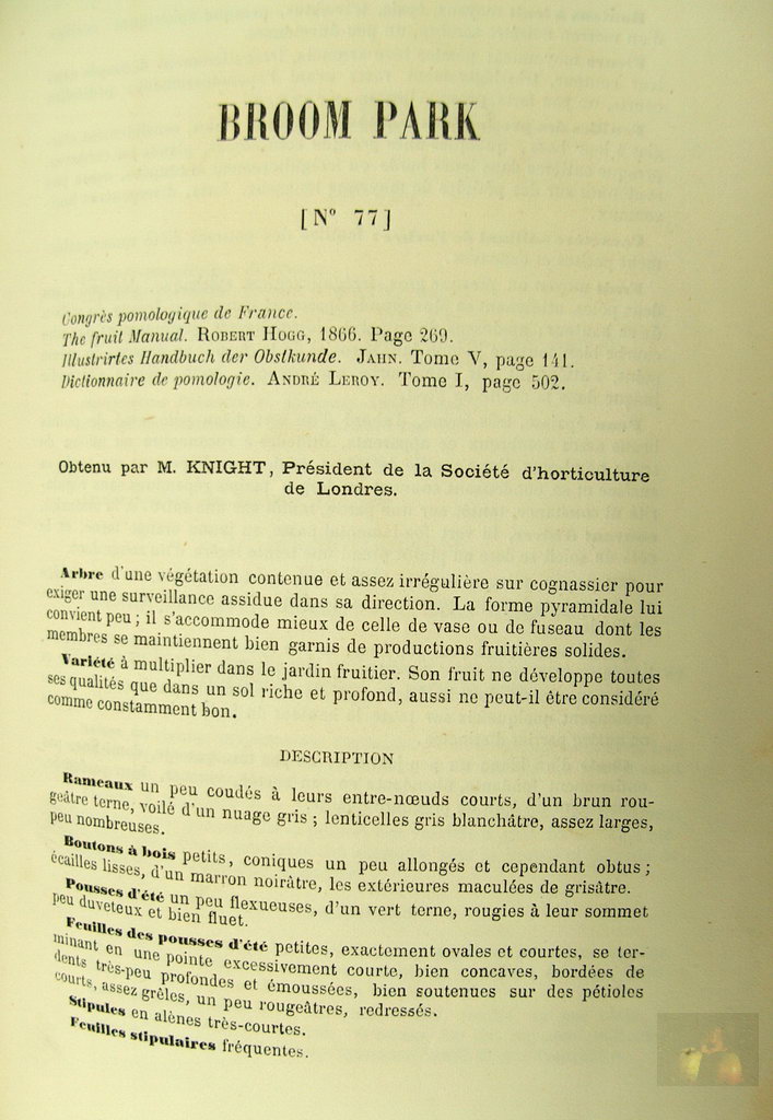 Obtenue par M KNIGHT, Pdt de la société d'horticulture de Londres / Raised by M KNIGHT, Pdt of the royal horticultural society of London