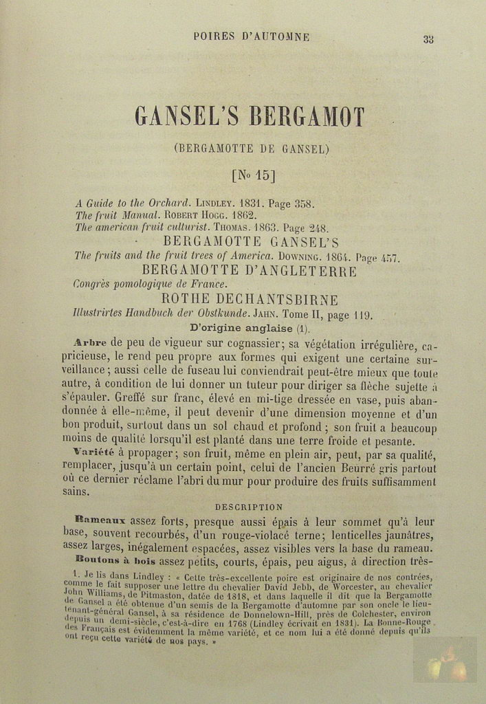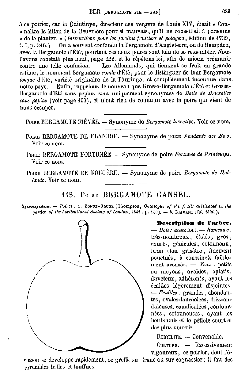 SYN. - BERGAMOTE DE GANSEL, Bergamote d'Angleterre, Bergamote tardive de Gansel Semis de bergamotte d'automne,