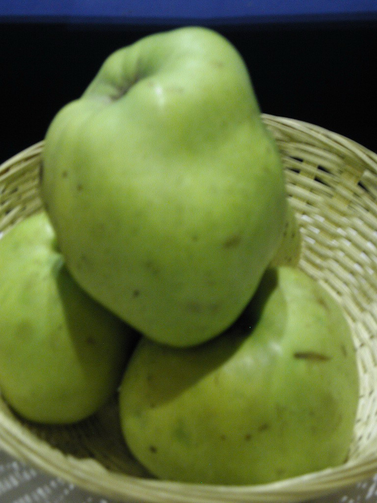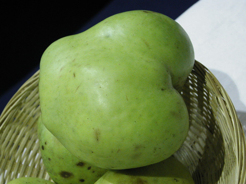 Grosse pomme à texture grossière, sèche, acide et sans parfum. Utiliser pour compotes