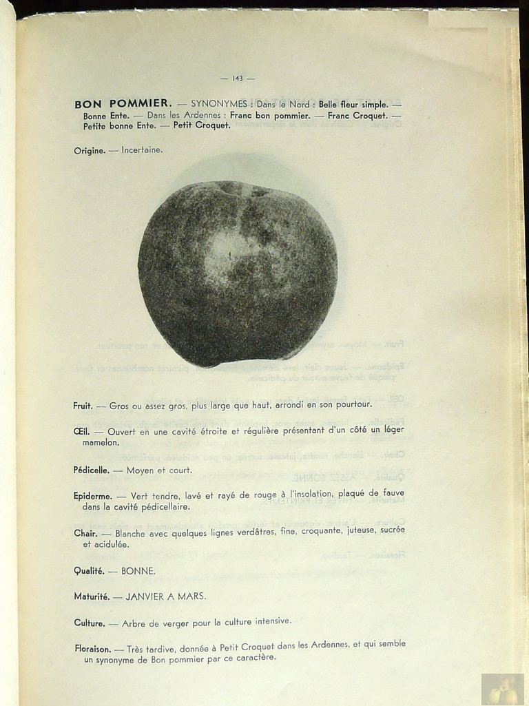 -Syn. - BON POMMIER? BELLE FLEUR SIMPLE, PETIT CROQUET, BONNE ENTE, FRANC CROQUET .FRANCE, NORD jVariété locale / Local variety