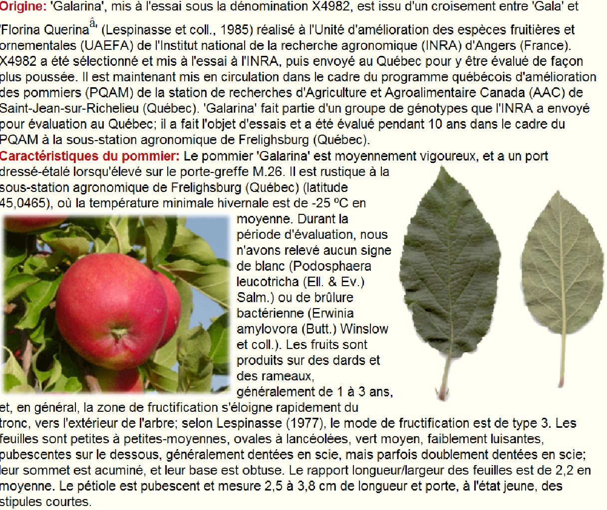 CARACTERISTIQUES - FEATURES arbre modérément vigoureux; érigé, porteur du gèneVf. de