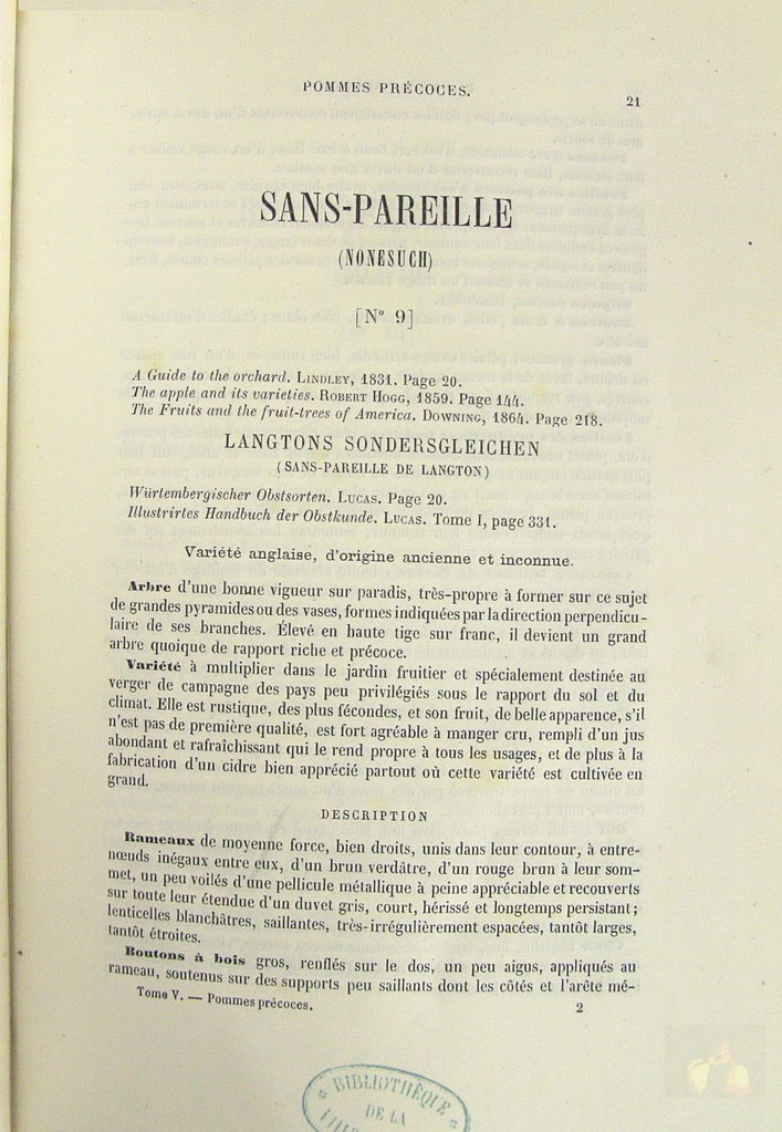 Syn. - Langtons Sondergleichen, Sans-pareilleUK / AngleterreFormer and unknown origin / Origine ancienne et inconnue