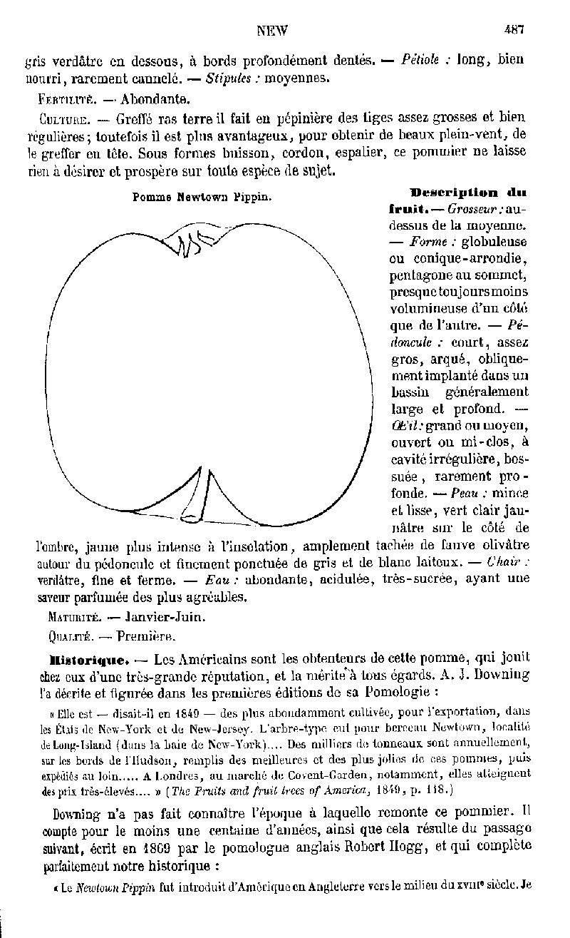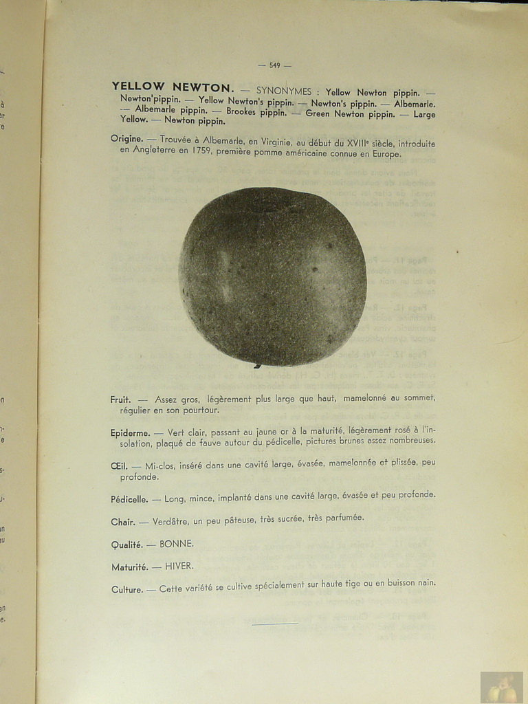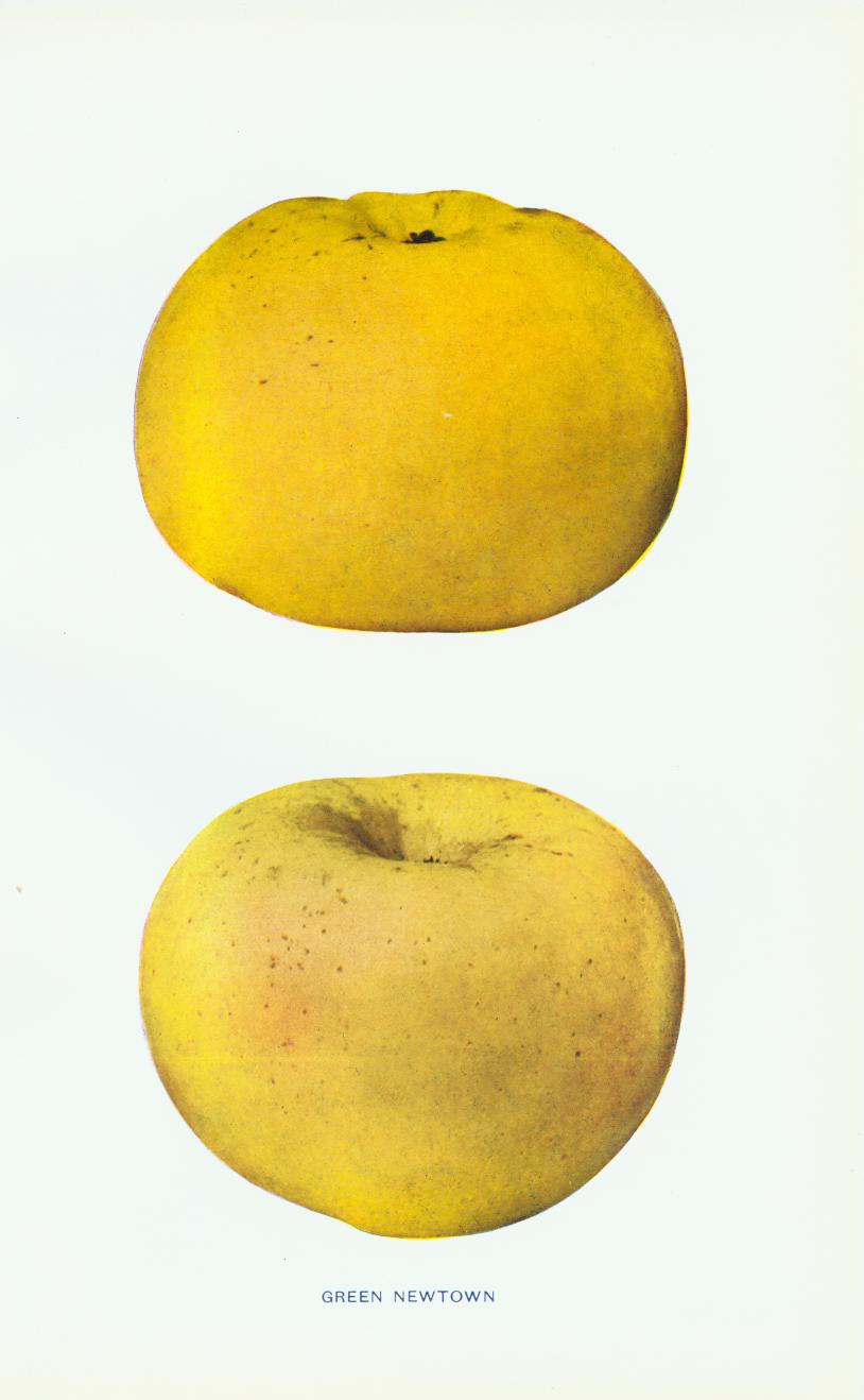 SYN -GREEN NEWTOWN, YELLOW NEWTOWN, Pépin de New-York, Reinette de New-York, Albemarle pippin, Brookes pippin, Hunt's fine green pippin,, Large Newtown Pippin, Neu Stady's Gelber Pepping, Petersbrugh pippin, Virginia pippin, Yopp's favorite