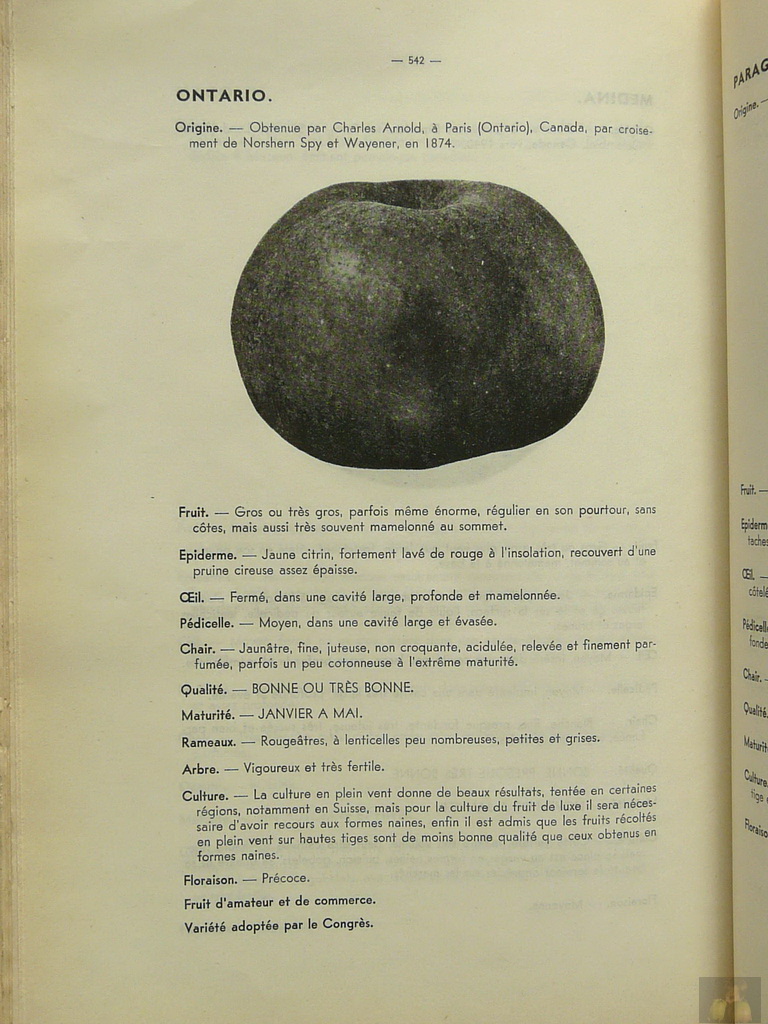 WAGENER X NORTHERN SPY 1874 - CANADA - PARIS - ONTARIO Raised by / Obtenue par M CHARLES ARNOLD